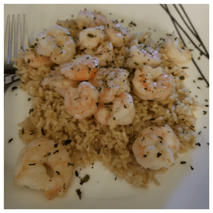 This meal only takes a few minutes to make, so toss your brown rice in the microwave before cooking the shrimp.