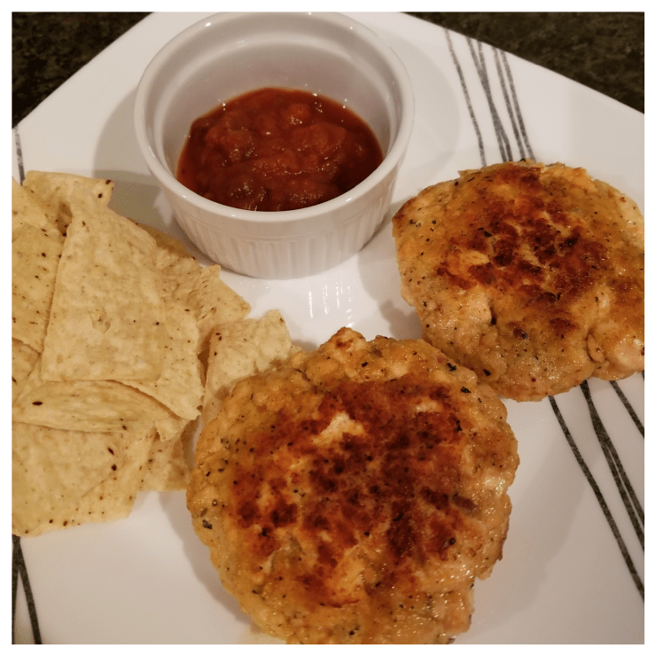 So, this salsa salmon meal is a pretty interesting one. When I first saw the recipe, I was intrigued by the combination of ingredients…and that made me want to try it. Of course, we did, and it is really good in its own unique way! The salsa and spices in the mixture give just a hint of Tex-Mex flavor, but the salmon really shines through most. We served with a little more salsa and some gluten-free tortilla chips (be careful for FODMAP limits if your chips have corn in them – we stick to around twelve strips). The recipe author suggests eating with cheese, lettuce, and a tiny bit of avocado if you’d like. We’ll try it this way in the future, I’m sure…but I wanted to get a feel for the patties by themselves on our first try (when I took this picture). A very enjoyable meal! One more detail to note: we cut the recipe in half for the two of us, and the patties were still HUGE. If you are only making patties for two people and don’t want leftovers, you’d probably be just fine to cut the recipe down to a fourth…especially if you eat them on a bun!