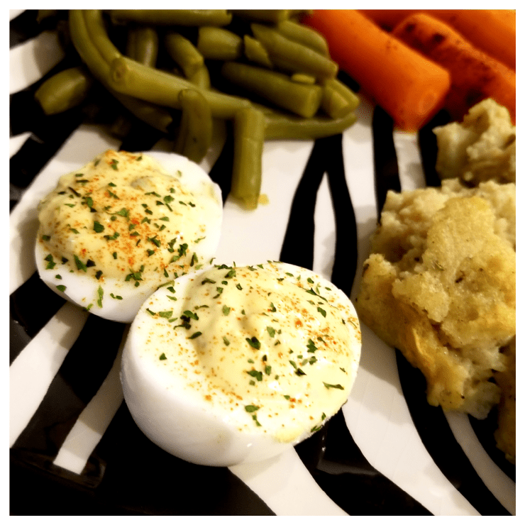I used to devour these at family holidays, and as I transitioned into adulthood, I became the maker of the deviled egg platter at every party. So, as I dreamed of holidays to come, I dove into figuring this one out – and alas, I made it happen!